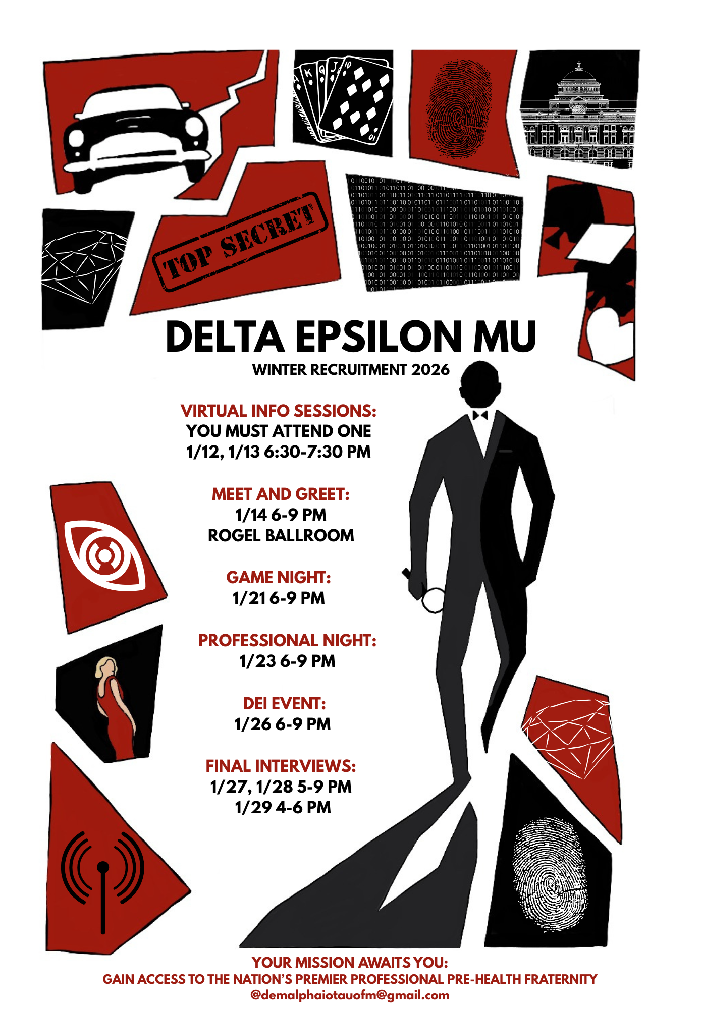 Your mission - should you choose to accept it - is to gain access to the nation’s premier professional pre-health fraternity: Delta Epsilon Mu!
